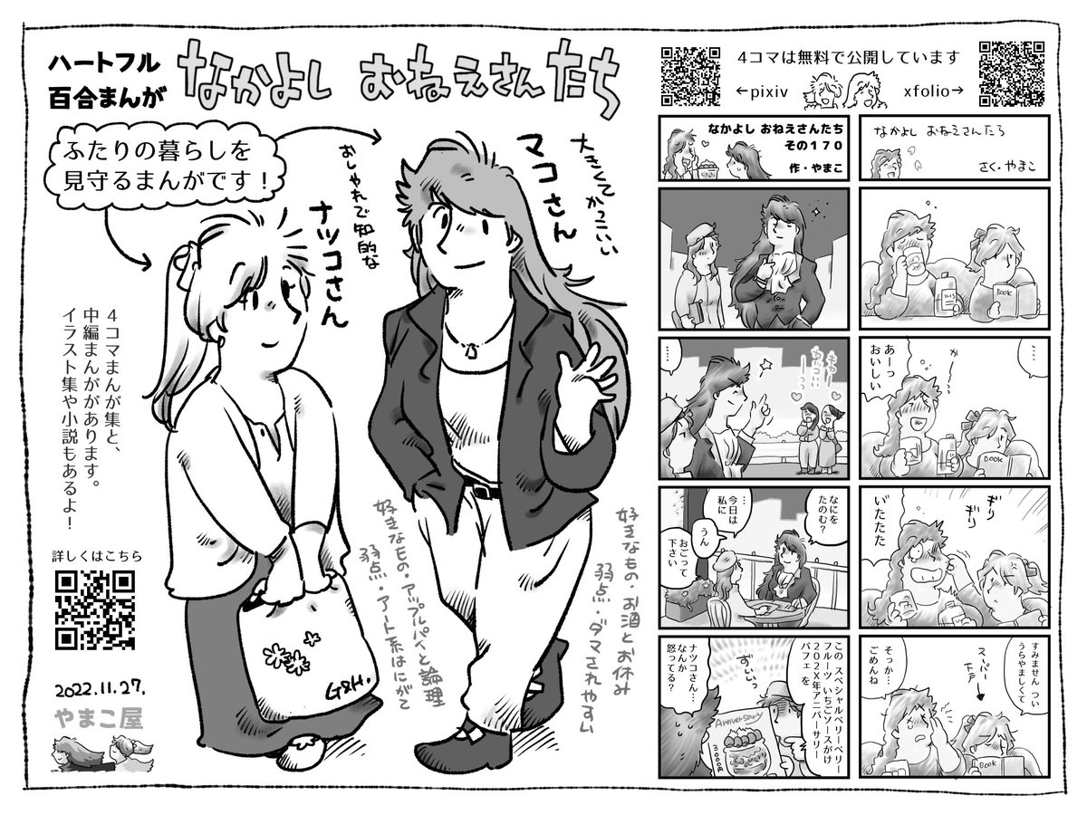 #COMITIA142 参加します! 新刊はハートフル百合4コマ集「なかよし おねえさんたち 6」です。未公開描き下ろしあります! 60P中編「マコさんと仲間たち」をはじめ、既刊も取り揃えております。よろしければ遊びにきてください。 #COMITIA #創作百合