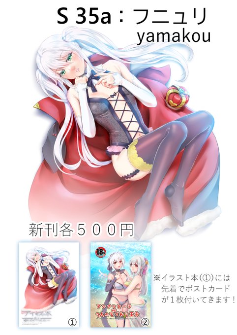 コミケ100情報: 8月14日(2日目) 東S35a「フニュリ」 新刊:二冊(各500円、合計1000円) ※イラスト本にポストカード1枚付き 見本→ pixiv.net/artworks/99963… pixiv.net/artworks/10010…