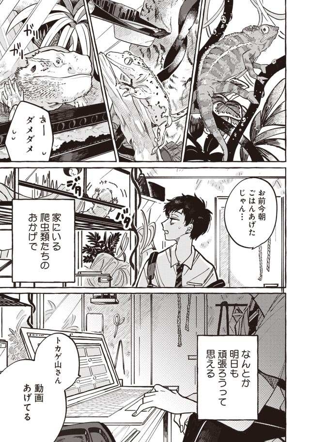 【最新話更新🦎】 #となりの爬虫類くん 12話①更新されてます! どんよりした回が続きますが ラストまで駆け抜けます! よろしくお願いしますー! comic.pixiv.net/works/8683