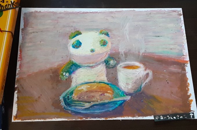 今日の絵。ケーキを見るパンダ。 このケーキ、食べてもいいかなあ…? #絵 #イラスト #絵描きさんと繋がりたい #art #illustration #drawing #Artist #pastel #パンダ #芸術 #芸術の輪 #絵の世界 #みんなで楽しむTwitter展覧会