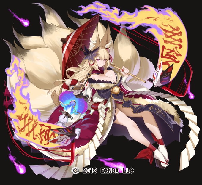 【お仕事】千年戦争アイギスで九尾狐カヨウの第二覚醒イラストを描かせていただきました。 喜んで使ってもらえたら嬉しいです!