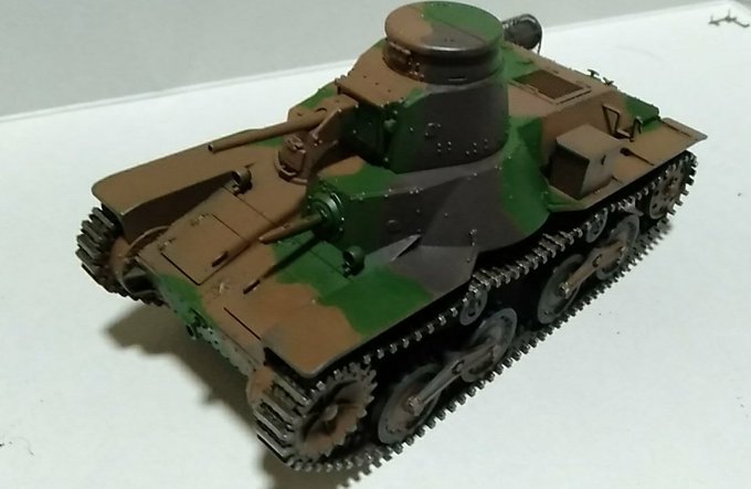 ファインモールド 1/35九五式軽戦車完成です! フォルム、ディティール共によく、作りがいのあるキットでした 今回は初めての日本戦車でしたが、 納得いく出来になりました(*´ω`*) #プラモデル #戦車模型 #ファインモールド