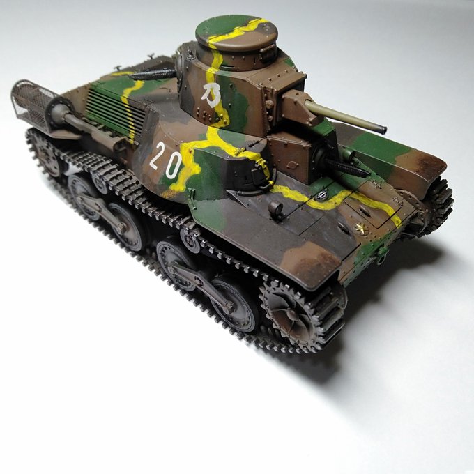 64 381 ファインモールド 1/35九五式軽戦車完成です! フォルム、ディティール共によく、作りがいのあるキットでした 今回は初めての日本戦車でしたが、 納得いく出来になりました(*´ω`*) #プラモデル #戦車模型 #ファインモールド 22/02/05 16:01