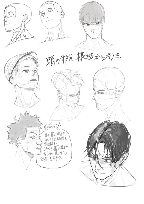 3ヶ月上達法。1巡目練習。角度がついた顔のパーツを練習する。なんかパーツがズレているから少しずつ試行錯誤して修正していく。 #3ヶ月上達法 #3ヶ月でさいとうなおきを倒す #絵描きさんと繋がりたい