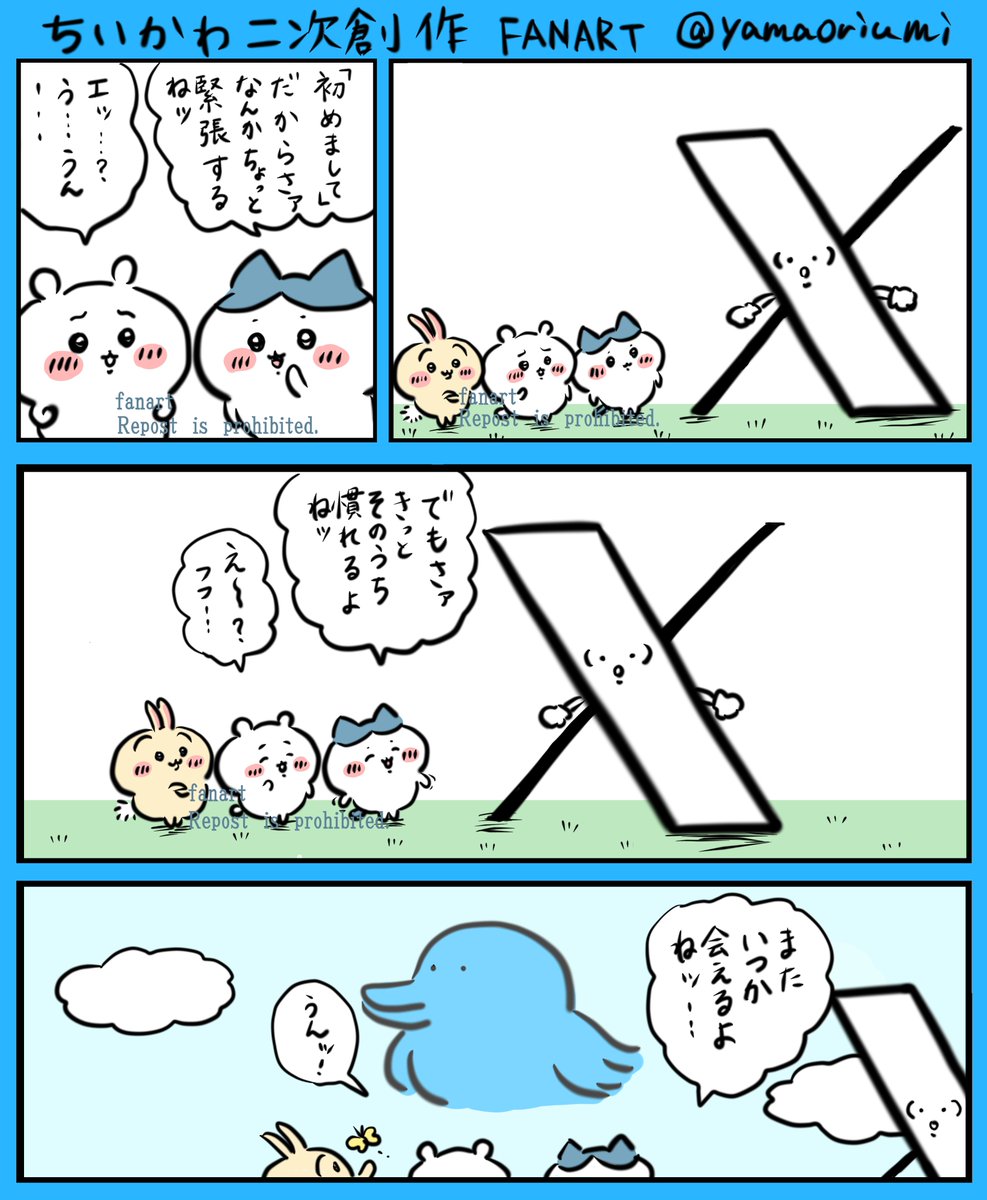 アイコンも全てXになってしまった。そのうち慣れるだろうけど鳥がいなくなったのはなんか寂しい。最後のコマはオデの回パロ #ファンアート