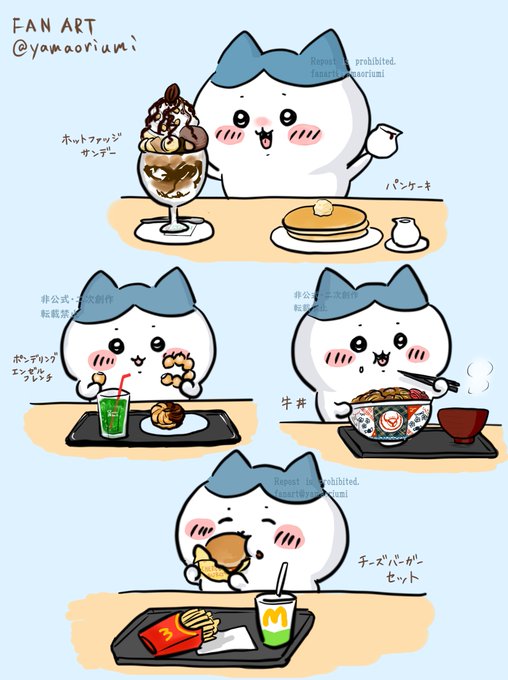 2118 14.8K ハチワレちゃんのお腹を満たしたいだけの絵。チェーン店系で外食三味 #ファンアート #fanart 23/06/28 14:15