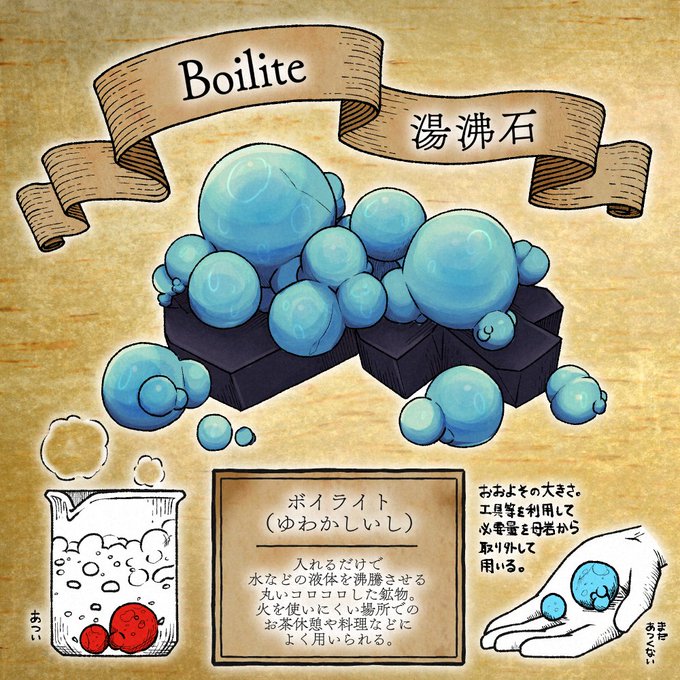 【PFMOH】ボイライト / 湯沸石【アイテム】 #pixivファンタジアMOH #PFMOHアイテム #ピクファンアイテム #PFMOH鉱物 pixiv.net/artworks/87894…