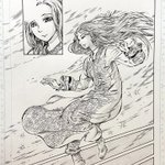 ペン入れ中。 すぐキャラ設定を忘れるので、描いたコマを手本にしながら描いています。 自分の描いた絵を手本にするのは、いつも不思議な気分ですね。 #イラスト #illustration #絵描きさんと繋がりたい
