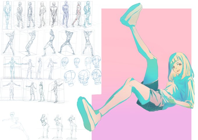 3221 27.8K 7~9日の練習内容 1.人体があまりに下手なのでデッサンなどをちまちまこなす 2.神絵師様の絵を模写、顔の比率、構図をひたすらメモして唸る 3.色塗りを改善すべく、色模写しながら色研究 4.服の皺がさすがに雑過ぎる気がしたので写真を模写してお勉強 22/09/09 12:01