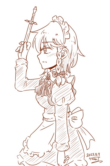 例大祭楽しそうだなぁと思いながら久しぶりに落書きで東方。咲夜さん