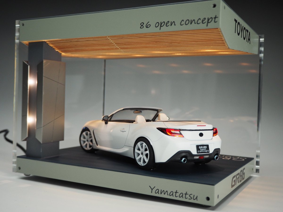タミヤGR86完成! 作品名:GR86Open concept 今作は3Dプリンタを初導入。 オリジナルホイールを作製。 86本体はオープン化とアイライン・テールの電飾。 台座はモダン建築のデザインを参考に木を用いた近代和風を取り入れてみました。 #HS36GR86コンペ #HS36GR86コンペ完成