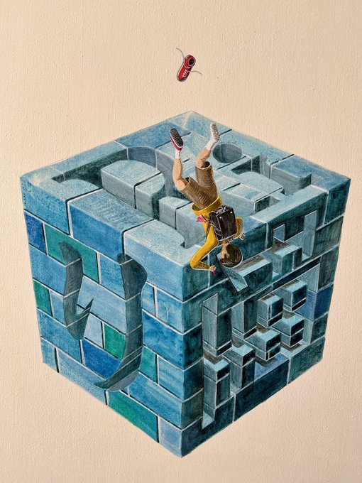 アイロンがけ→目止め→キャンバス張り→ジェッソ→ヤスリがけ で下地完成☆ 下書きを転写していくよ☆ これは、、、また文字になってるけど読めないと思う! 僕の絵はどこに向かっているのか、、なぞなぞみたいになってるけど、でも面白いと思うからこれで突き進もう☆ #illustration #イラスト