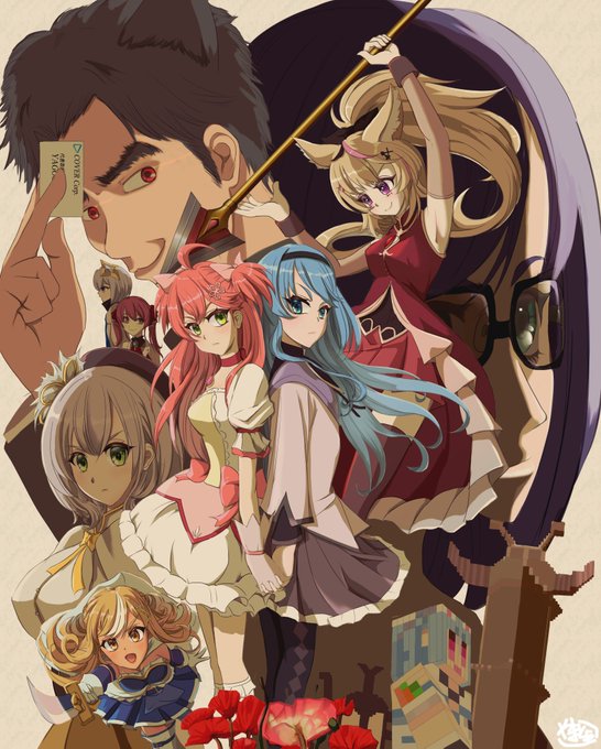 60 191 『ごにんの時間、選びとる未来。』 まどマギしらけんリコリコ風メインビジュアル、描きました #ほしまちぎゃらりー #miko_Art #絵まる #ノエラート #しらぬえ 23/04/30 17:55