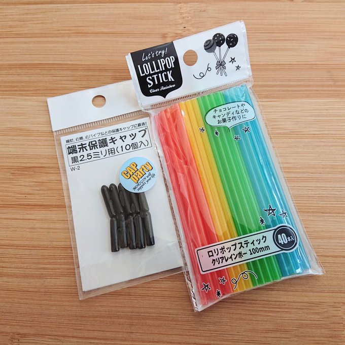 この2つがあれば差し込むだけで憧れの武器や応援グッズに✨ 軸は百均、保護キャップはホムセン調達しました😊