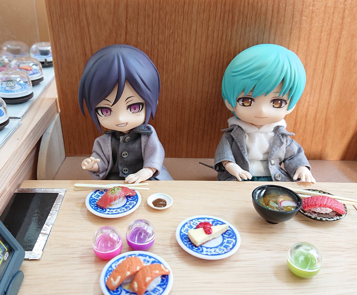 刀剣乱舞クリアファイルのコラボ期間は1度しか行けなかったけど、いち兄が「次は弟たちと参ります」と言っていたので眠っていた鮮度くんガチャの出番🍣✨ 无伝く○寿司ごっこ😋