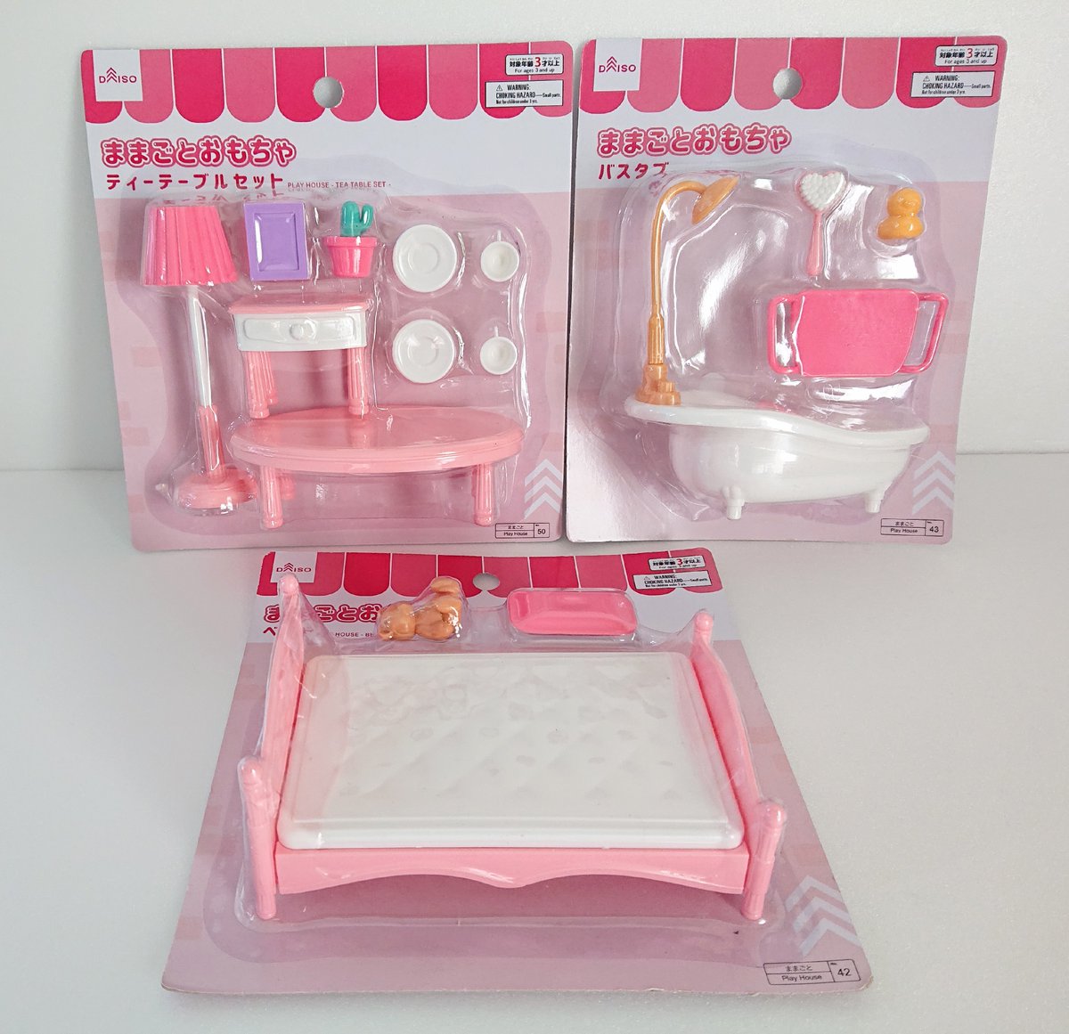 130 233 ダイソーさんのままごとおもちゃ 4種のうちバスタブ、ベッド、ティーテーブルセットを買いました。 どれも百円なのにこの品数💦 ベッドはねんどろいどサイズだけど他のはオビツちゃんと共用できそう。 塗り替えやアレンジで大人も楽しませてもらいます😊 21/10/03 17:35