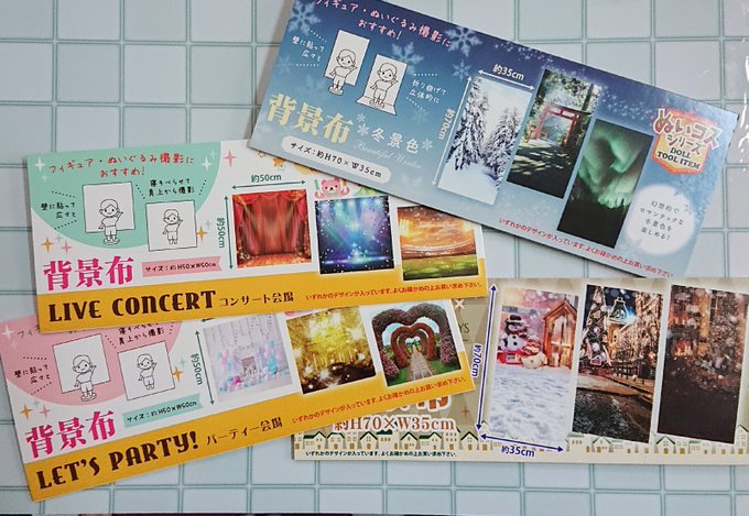 セリアさんが全力でオタ活を後押ししてるのか背景布がめちゃ増えてました✨ お掃除の妖精リサイタル 他のもどう遊ぼうかと考えるだけでワクワクします♥