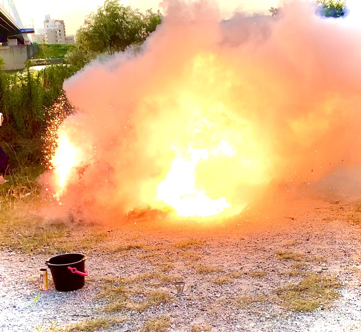 淀川手持ち花火大会は強すぎる川風によって花火集積所に引火して全焼しました🔥🔥🔥 怪我人がいなくてよかった