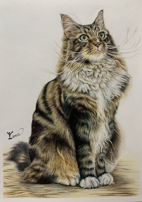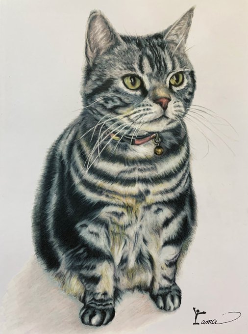 可愛らしいアメリカンショートヘアの『なな』ちゃん完成です✨ 漂うボス感が表現できていたら大成功です😽 今回は色鉛筆&アルコールマーカーを使用して描いています✏️ size:A4(210㎜×297㎜) #色鉛筆画 #猫好きさんと繋がりたい #ねこのいる暮らし #アメリカンショートヘア
