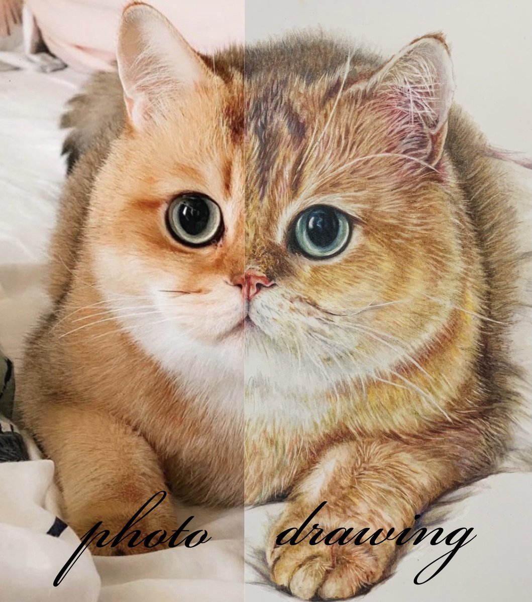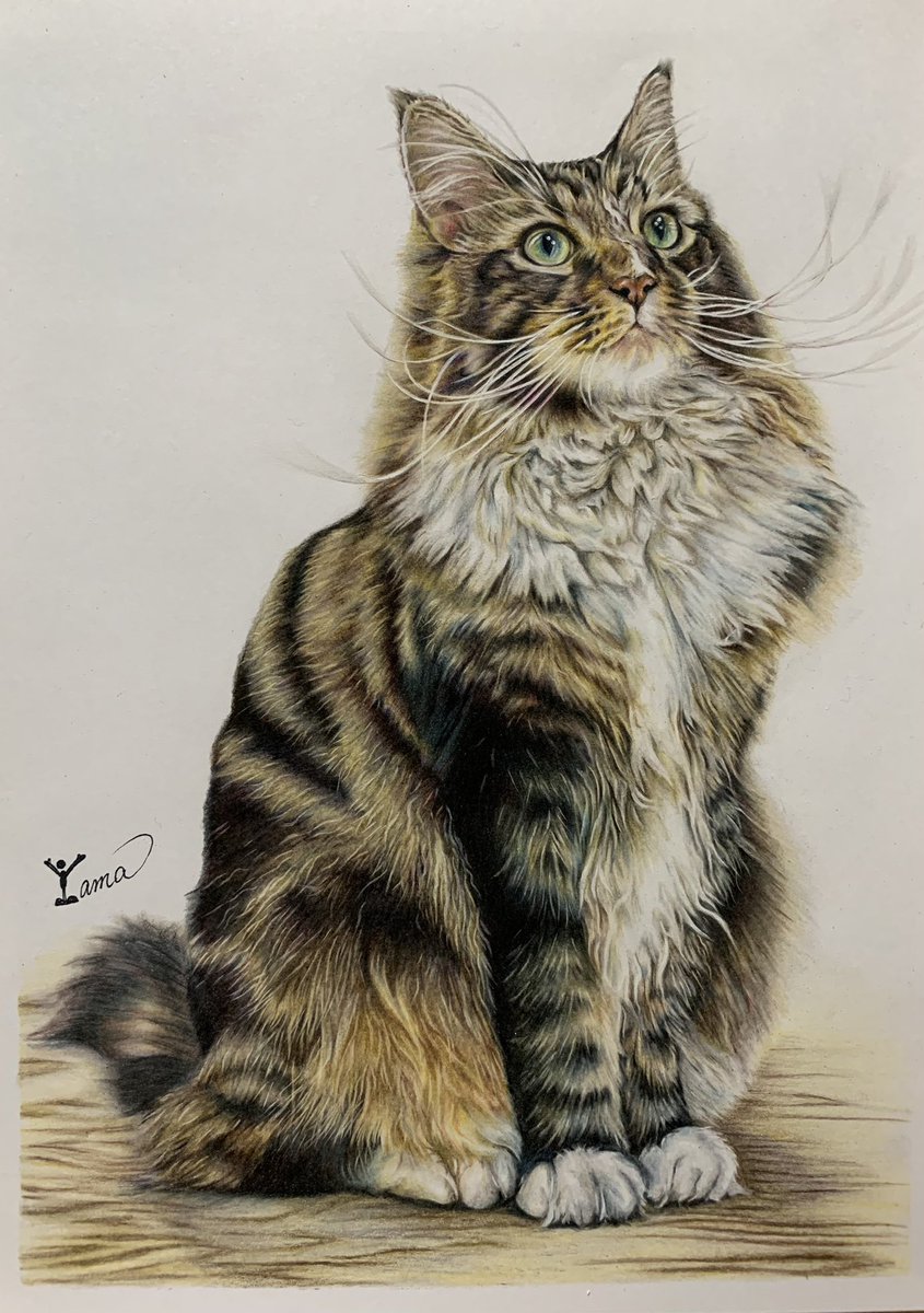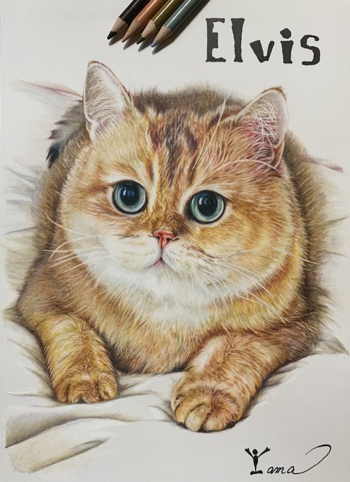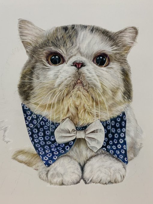 toasted_elvis様の 『Chin』ちゃんにモデルになっていただき色鉛筆画を描きました☺️✨ 100%completed🎉 size:A4(297㎜×210㎜) #色鉛筆画 #絵描きさんと繋がりたい #coloredpencil #ねこ #cats #artilljp