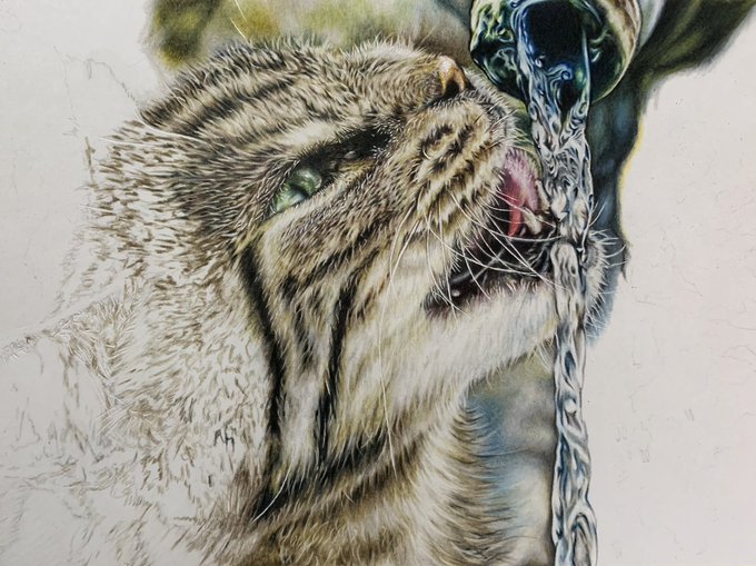 @toasted_elvis 様の『Elvis』ちゃんにモデルになっていただき色鉛筆画を描いています🥰✨ 途中経過② 55%complete. size:A4(297㎜×210㎜) #色鉛筆画 #coloredpencil #ねこ #猫好きさんと繋がりたい #猫のいる生活 #cats #CatsOfTwitter #artilljp