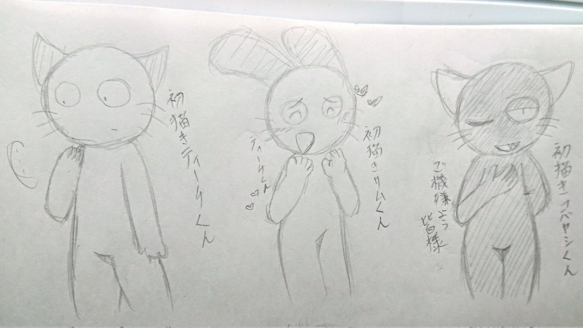 初描きねこのティーチくん みんな個性的すぎて大好き 箱推しだけど強いて言うならコバヤシくんが好き