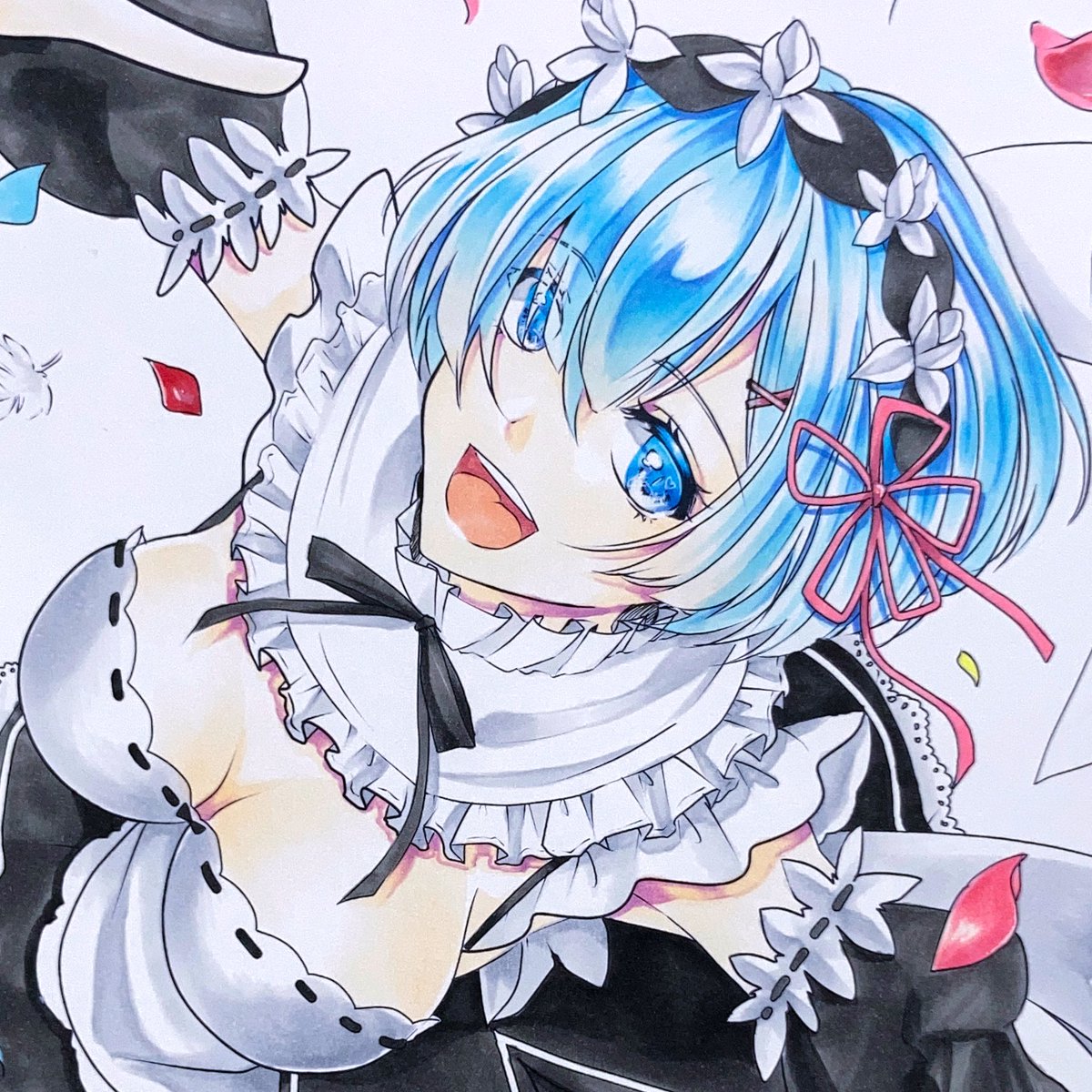 レムちゃん完成した(*´-`) #コピック #コピックイラスト #イラスト #アナログ絵