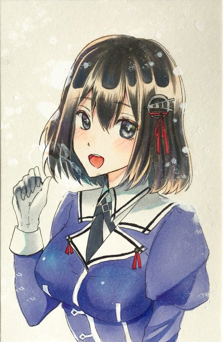 新しい紙をかったので羽黒ちゃん試し描き✨ 髪飾り逆なのご愛嬌で😭 #コピック #アナログイラスト #艦これイラスト #艦これ好きと繋がりたい #羽黒 雪やこんこん