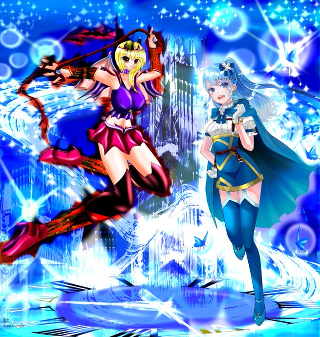 フォロワーさんの、川端ちよさん(@chixoko1)を、ブラマジガール風に描かせてイタダキマシタ~💖🤩💖((意味深 て、…4月の尊き御方との“不思議仕掛けのラビリンス”合わせ絵まで、スーパー清楚期間である為、布面積多めの邪な考え無しです~∑😳👍 #イラスト #絵描きさんと繋がりたい