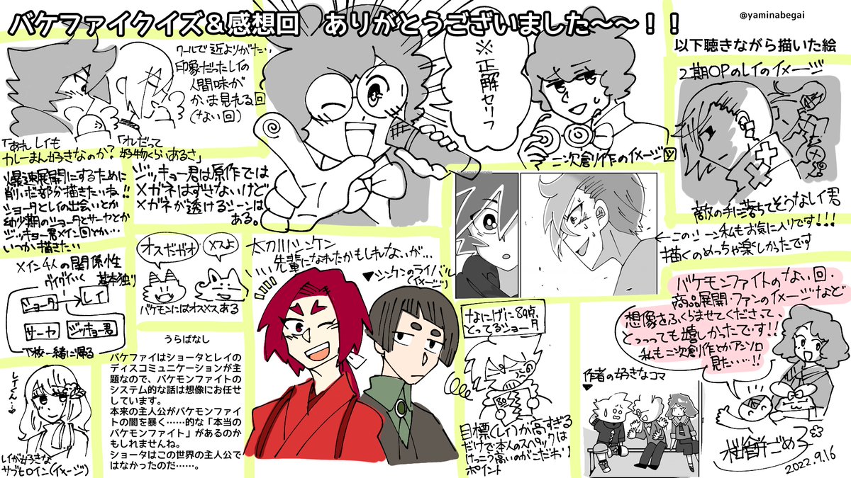 自作品を肴に想像を膨らませていただけるなんてすごい贅沢な体験をしてしまった……!ありがとうございます!!!あまりに嬉しかったので聴きながら内容に合わせた絵を描きました。 いずれショータ達の過去回とか描きたいですね〜! #キズナ合体バケモンファイト