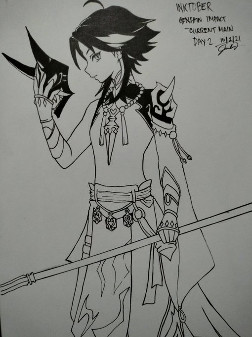 Inktober Genshin Impact Day 2 - Current Main Xiao #inktobergenshinimpact #inktober2021 #genshinimpact #xiao