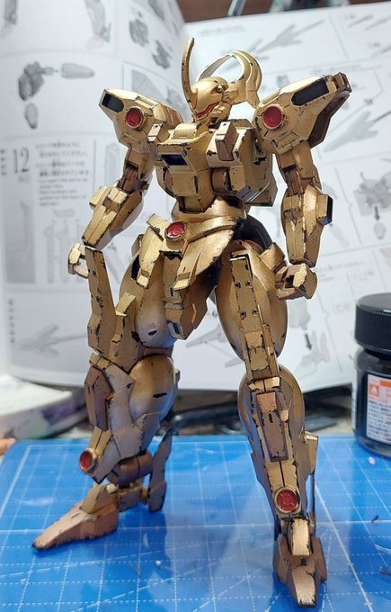 3 10 ダリルバルデのウェザリングを開始。 まずはメラミンスポンジにディアクティブブラックを染み込ませてスタンプ。 やり過ぎたら金を上塗りしたり、面相筆で傷を塗っていきます。 #ガンプラ #ダリルバルデ 22/12/14 22:57