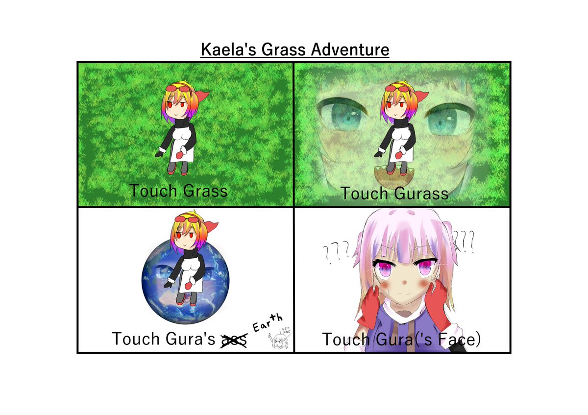 Kaela was touching grass for the past few days. This went through my mind because it was very bored. And really terrible at puns. I'm sorry. #gawrt#inKaela#kaeLaugh