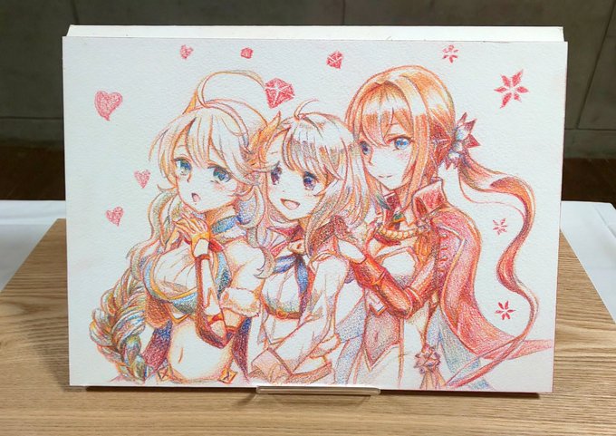 3 9 #白猫お絵描き 色鉛筆三色で描いてみました。 バレンタイン組。 20/02/17 20:03