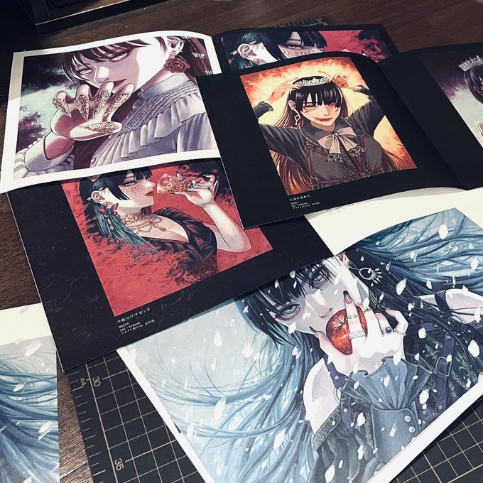 【新刊できました】 アクリル絵の具で絵を描き始めて約半年の作品をまとめたイラスト集を作りました。ワーーイヤッター!!!!!! 🍎11/27 #COMITIA142 (東京ビッグサイト) 🍎12/1~11 通販(BOOTH) にて販売いたします。 その後もイベントや展示等で販売予定です。 ぜひゲットしてくださいましー!!