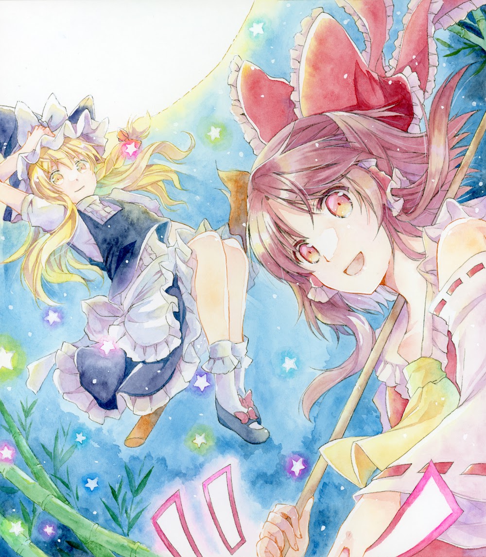 この前の霊夢とオソロイな感じの魔理沙を描いてみた! スキャニング補正難しい…
