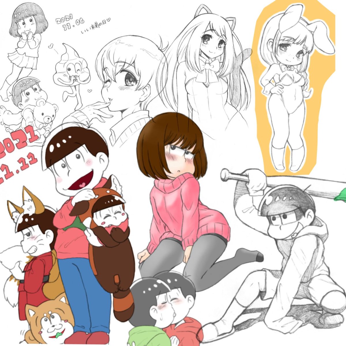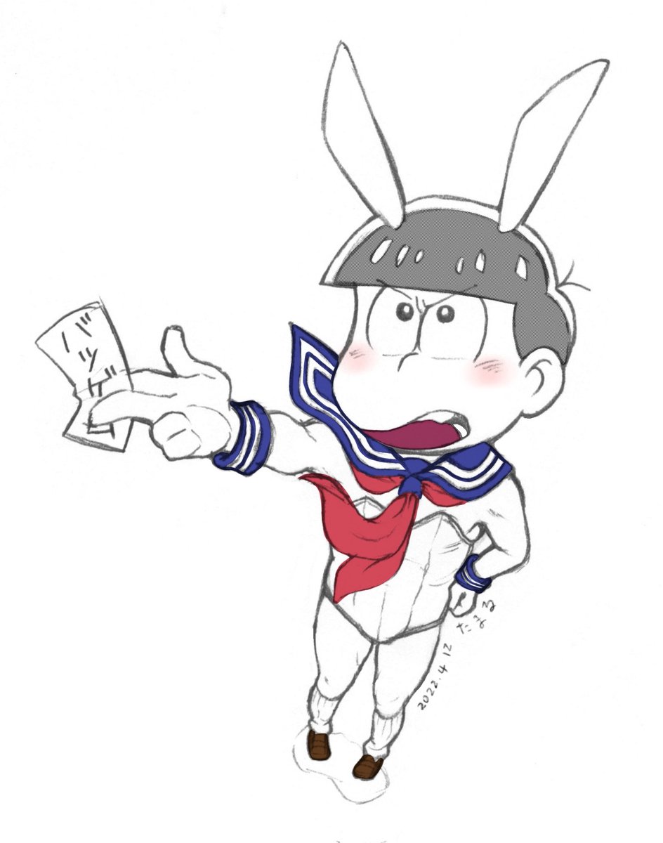 #春のペン松り #春のペン松り2002 昨日のセーラーバニーおそ兄、上から見たのはアオリじゃなくてフカンだよね💦恥ずかしや😳 どうも気になる箇所がたくさんだったので、描きなおしてみました。まだ下腹部から太もも辺りに違和感を感じるけど、ましになった👍はず💦