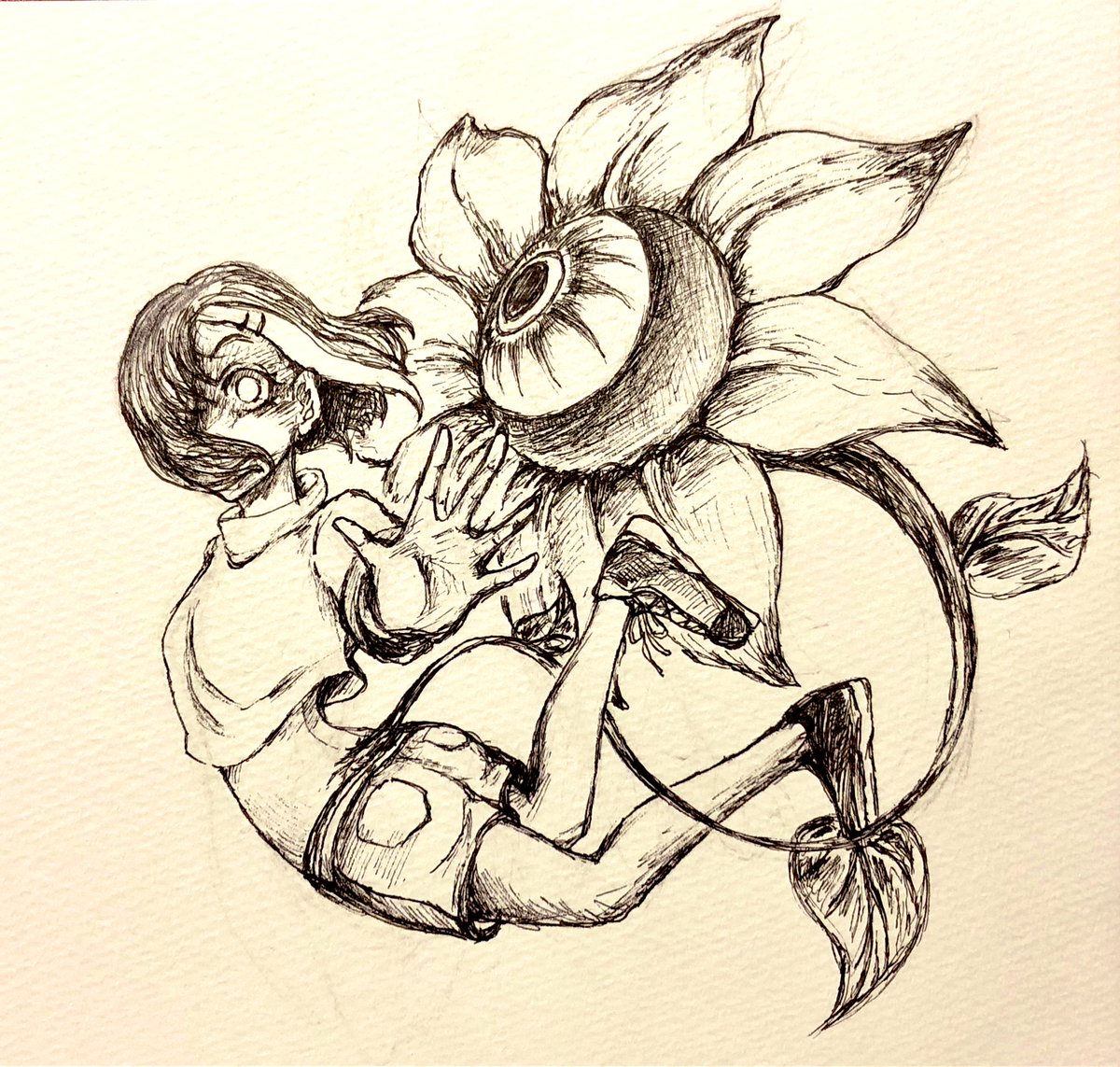 1 4 #水彩イラスト #ペン画 #花 花と蜂。ペン画と水彩やっぱ難しいや 23/06/21 21:40