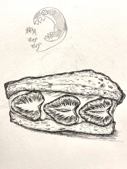 1 2 #食べ物イラスト #ペン画 ペン画で描きたくなったイチゴサンド。上のマリオのワンワンみたいなのは自分のサイン。 23/03/27 14:44