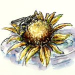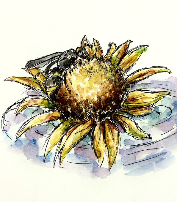 #水彩イラスト #ペン画 #花 花と蜂。ペン画と水彩やっぱ難しいや
