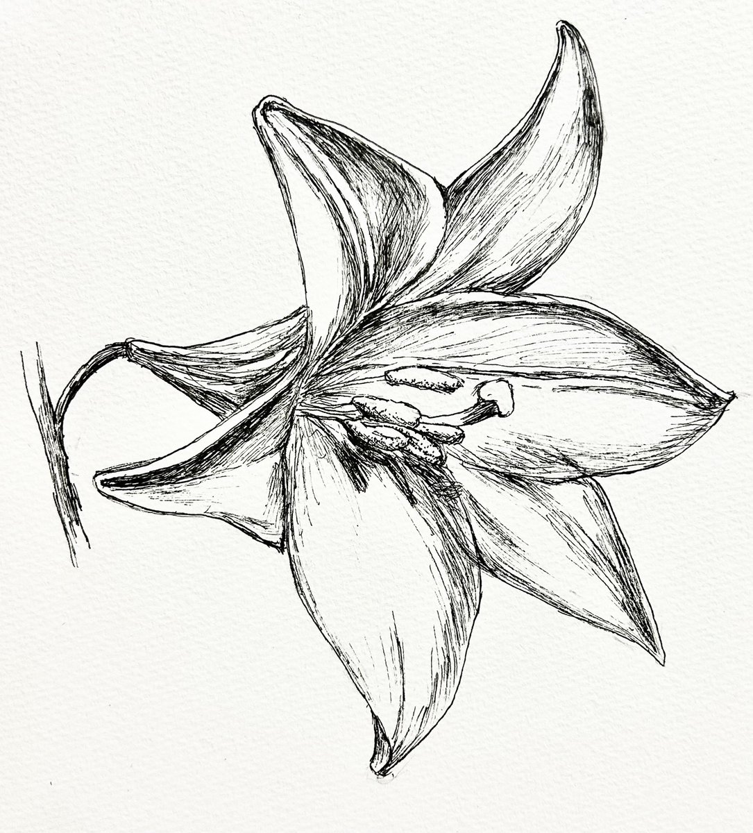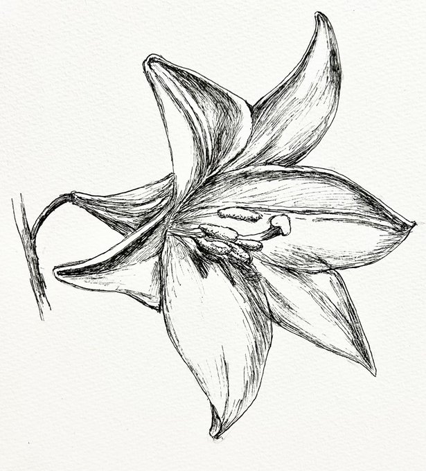#アナログ絵 #ペン画 #百合 百合って花びらの端が若干透けてるところが、花言葉の純粋や無垢って感じがして好きです。