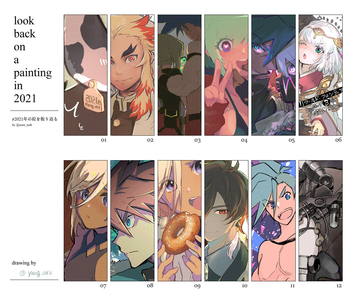 テンプレートお借りしました!! 描いてる月と描いてない月の差が激しかった。いろんなのに挑戦する気概だけは感じる #2021年の絵を振り返る