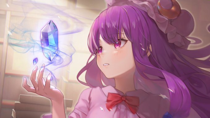 28 72 パチュリー・ノーレッジ 先週公開された、「HEPT-GRAM」のサムネイルとしてトリミングする前の全体絵をやっと公開します😌 #東方Project 22/03/23 20:55