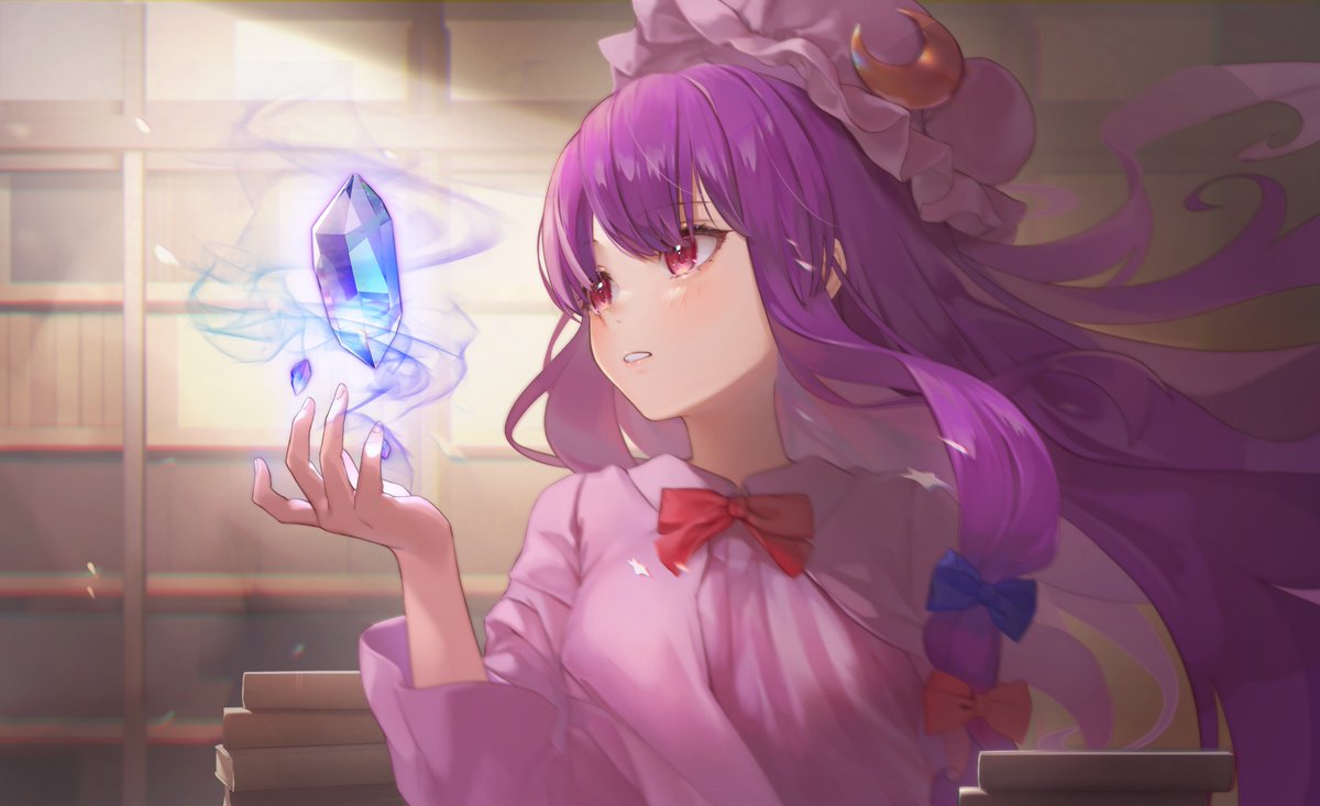 パチュリー・ノーレッジ 先週公開された、「HEPT-GRAM」のサムネイルとしてトリミングする前の全体絵をやっと公開します😌 #東方Project