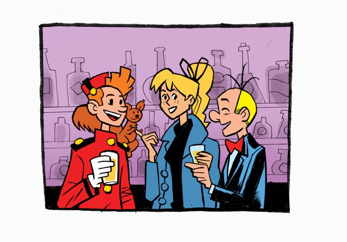 Inktober 2020 27: Spirou et ses amis à l'apéro. On s'ennuie d'aller prendre un verre même si aucun bar n'accepterait Spip. #inktober2020 #inktober #spirou