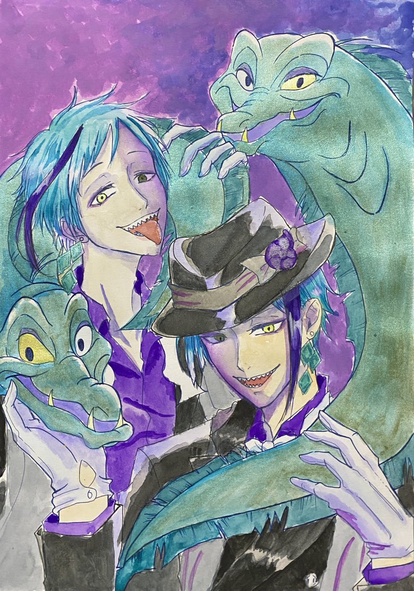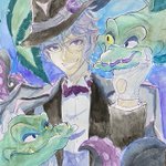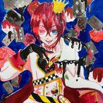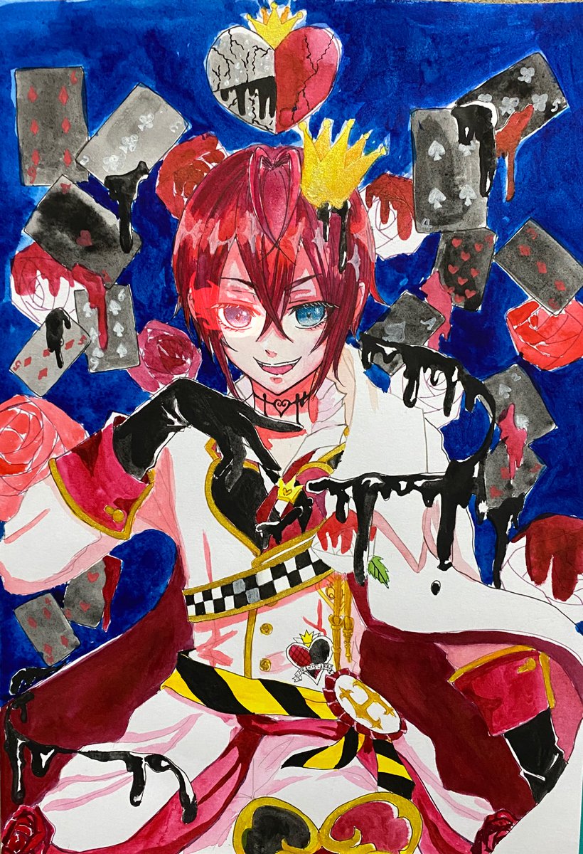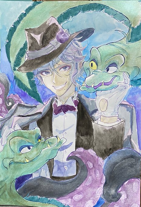 リドルくん!! ほんのりオバブロ臭をのせて… 2枚目にお目目の炎をデジタルで加筆してます(* ´ ˘ ` *) #リドルローズハート生誕祭2021 #リドルローズハート #ツイステファンアート #twstファンアート #オーバーブロッド #ハーツラビュル #アナログイラスト #水彩イラスト