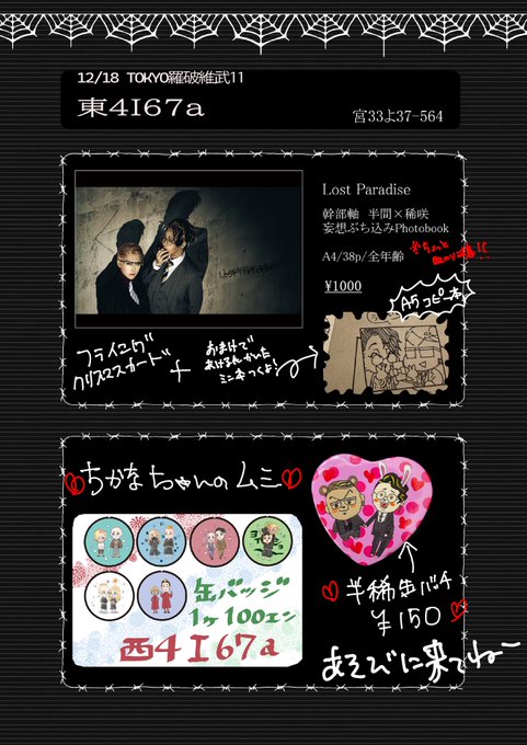 12/18羅破維武11 サークル参加します😍😍東4 I67aだよ!🔨👓の写真集持っていきます💖兄貴のおまけが楽しみだ〜💕💕