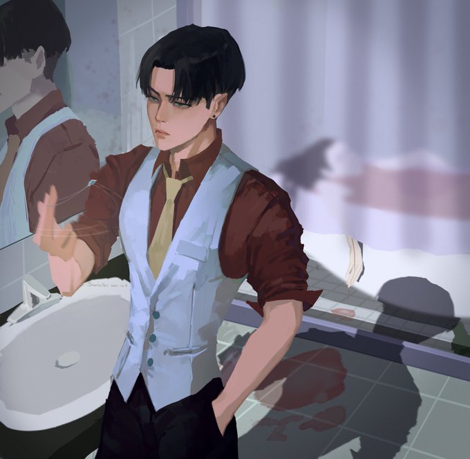 他张开手,风穿过指缝,掀起遮挡视线的刘海 第一次睁眼 呼吸 触碰流动的空气 眼中的景色,未来,都不再是一望到头了 “嘘,别去打扰他” #attackontitan #leviackerman #aot