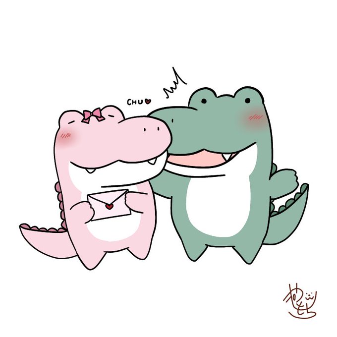 おはようございます〜✨ のんびり楽しくお過ごしください(*´ω`*) 今日も応援しています🐾 ワニ子ちゃん好きです。ぼくとお付き合いしてください! …え!?OKですか!やったぁ! #ゆるいイラスト #ワニ #イラスト好きな人と繋がりたい