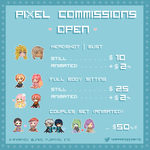 Haven't done commissions in a long time but would love to get back to it, especially pixels! If you're interested, send me a DM! #pixelart #pixelartist #pixelcommissions #ドット絵 #コミッション #under500gang #NobodyArtistClub #commissionsopen #CommissionSheet